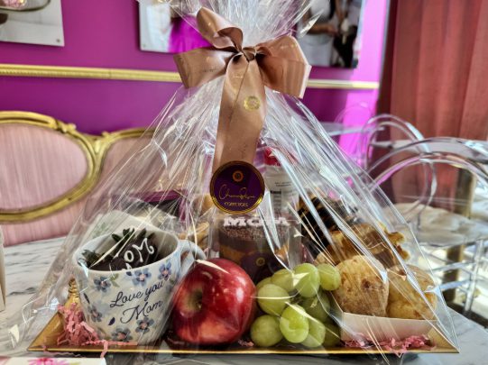 Surprise Mom with breakfast in bed from ChoccoDiva, a beautiful dessert shop on Park Road specializing in made-from-scratch Brazilian and American sweets. The breakfast tray includes assorted pastries, croissants, and breads; an individual “Mom” cake; chocolate-covered strawberries; four signature brigadeiros (traditional Brazilian truffles) and fruit, cheeses, and tea.