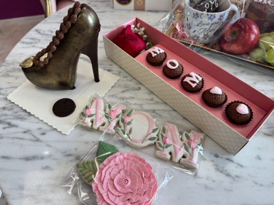 Additional treats for Mother’s Day include a chocolate high heeled shoe filled with brigadeiros and a rose and chocolate truffle box. Order ahead of time for the breakfast tray and pick up Mother’s Day morning.