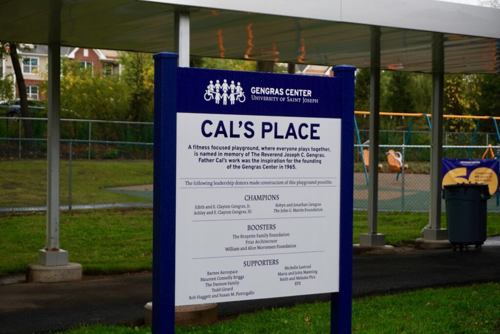The playground honors the legacy of Father Joseph “Cal” Gengras, a member of the philanthropic family whose support made the establishment of the Gengras Center possible 60 years ago. The facility, established in 1965 and located on eastern side of the USJ campus, provides “state-approved, private education for students with intellectual and developmental disabilities, autism, and related behavioral challenges,” according to USJ.