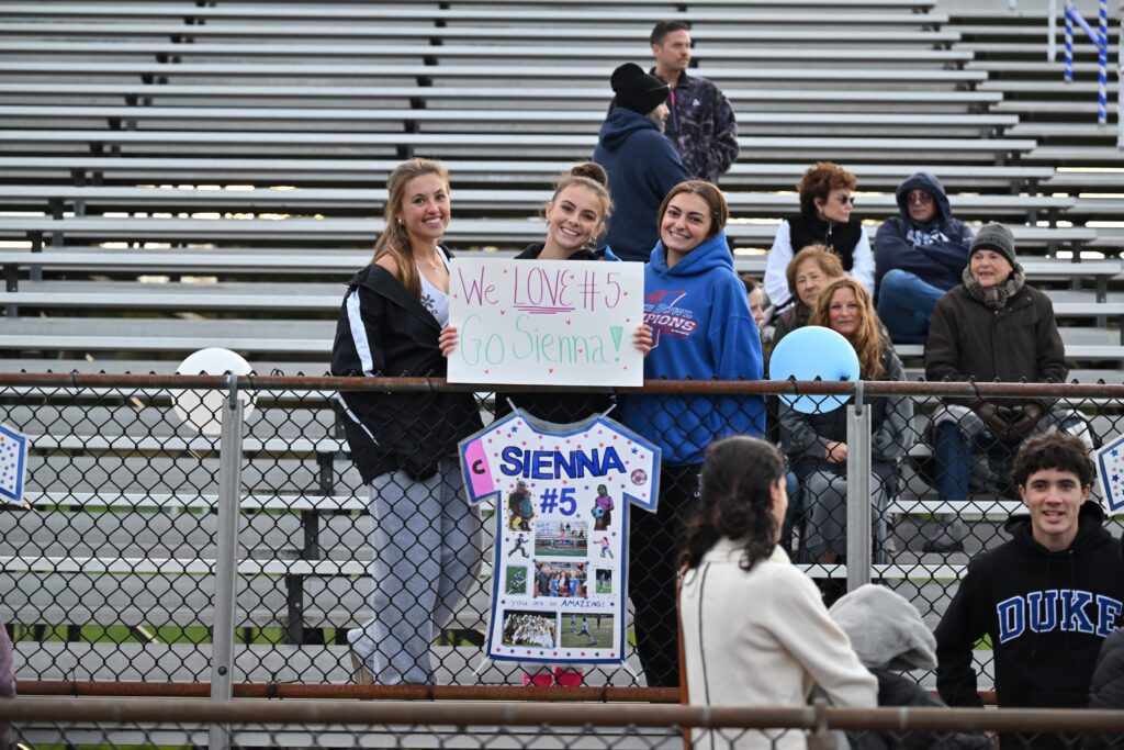 Some Hall students with a sign to celebrate senior captain Sienna Calabro. Hall vs. Northwest Catholic girls soccer. Oct. 15, 2025. Photo credit: Craig Rosenberg
