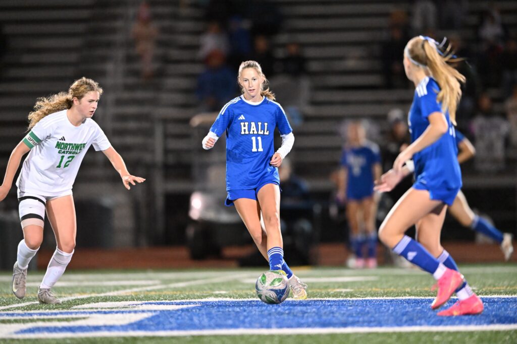 Chloe Lynch Possessing the ball. Hall vs. Northwest Catholic girls soccer. Oct. 15, 2025. Photo credit: Craig Rosenberg