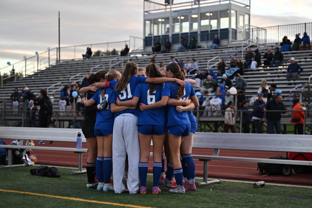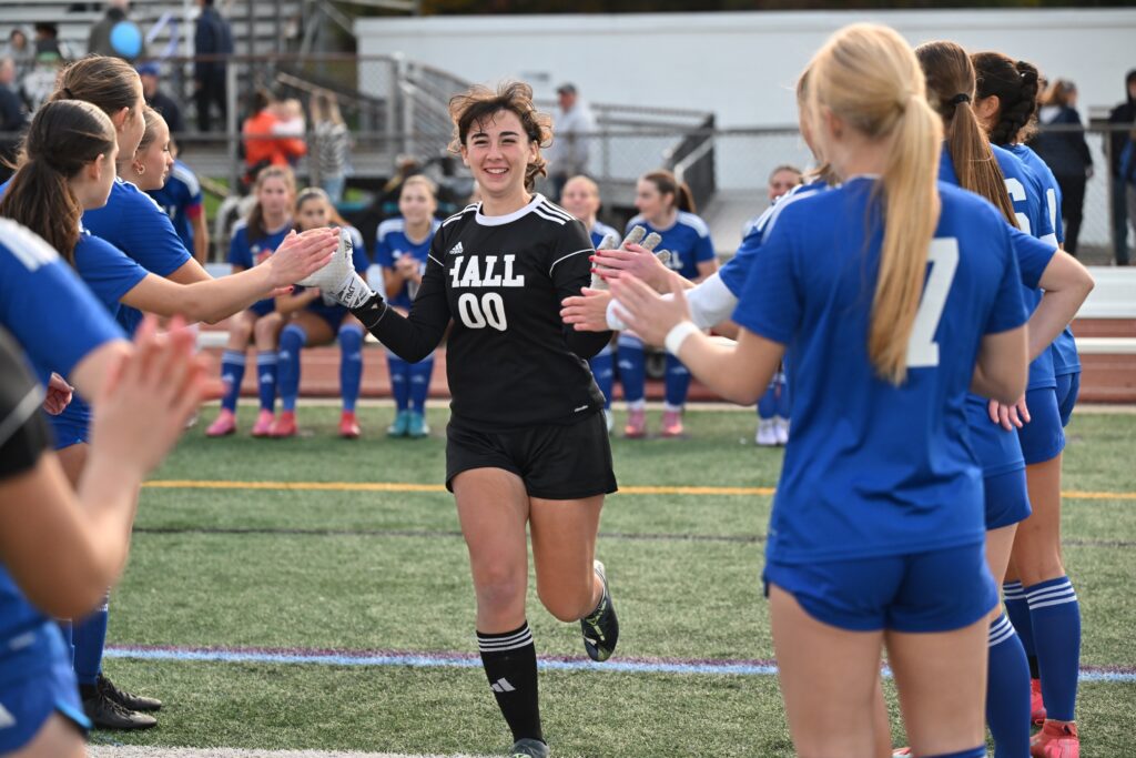 Hall Titan Seniors are celebrating together. Hall vs. Northwest Catholic girls soccer. Oct. 15, 2025. Photo credit: Craig Rosenberg