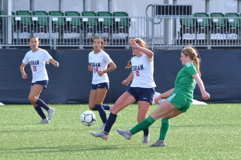Staunton had the goal of the game for Northwest Catholic one minute later. The senior co-captain, who was drawing double teams from the defense, managed to find space with possession of the ball. She crossed midfield beating one defender, and moved with the ball towards the center of the field. She drew two more Foran players, but managed to work past them, finally striking a low ball to Frederick’s left that the goalie could not get to, and the score was tied at 1.