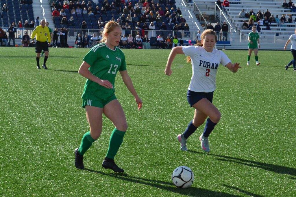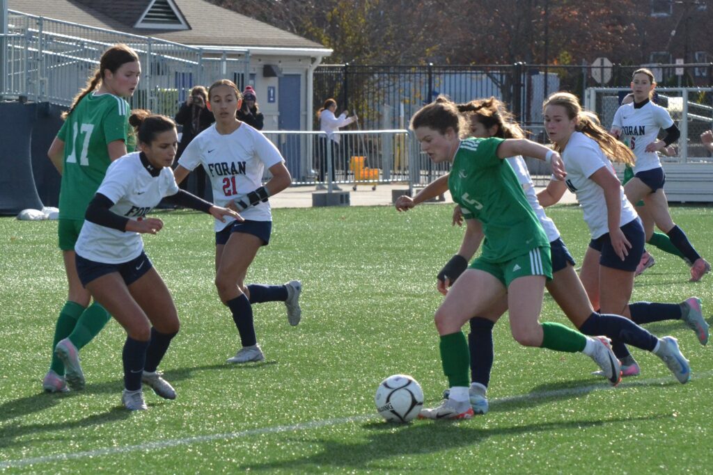 The ball would be played out of bounds by Foran, and Northwest scrambled to get something on goal with a final corner, but it was not to be and Foran would win its first girls state soccer title.