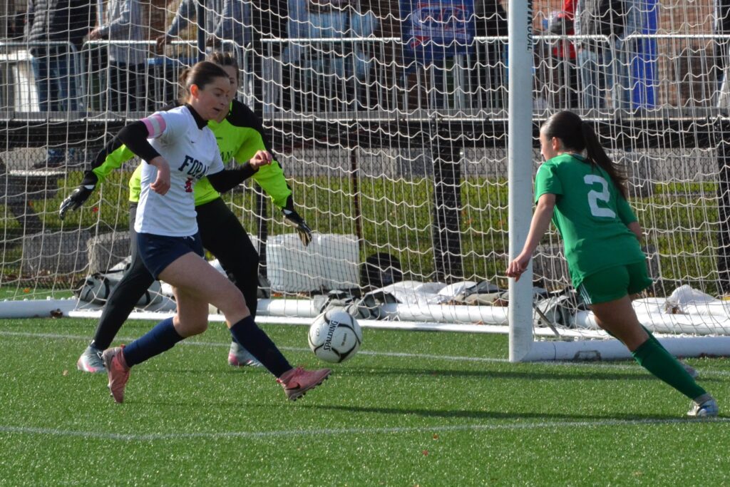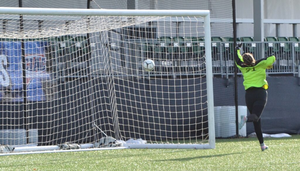 And with just two minutes to play, Mya Montoney was chasing a loose ball into the box, and Frederick was coming off her line for the same ball. Frederick’s attempt at clearing the ball failed as she dubbed the kick, but she was bailed out by a Foran defender who was able to beat Montoney to the fee ball and knock it out of danger.