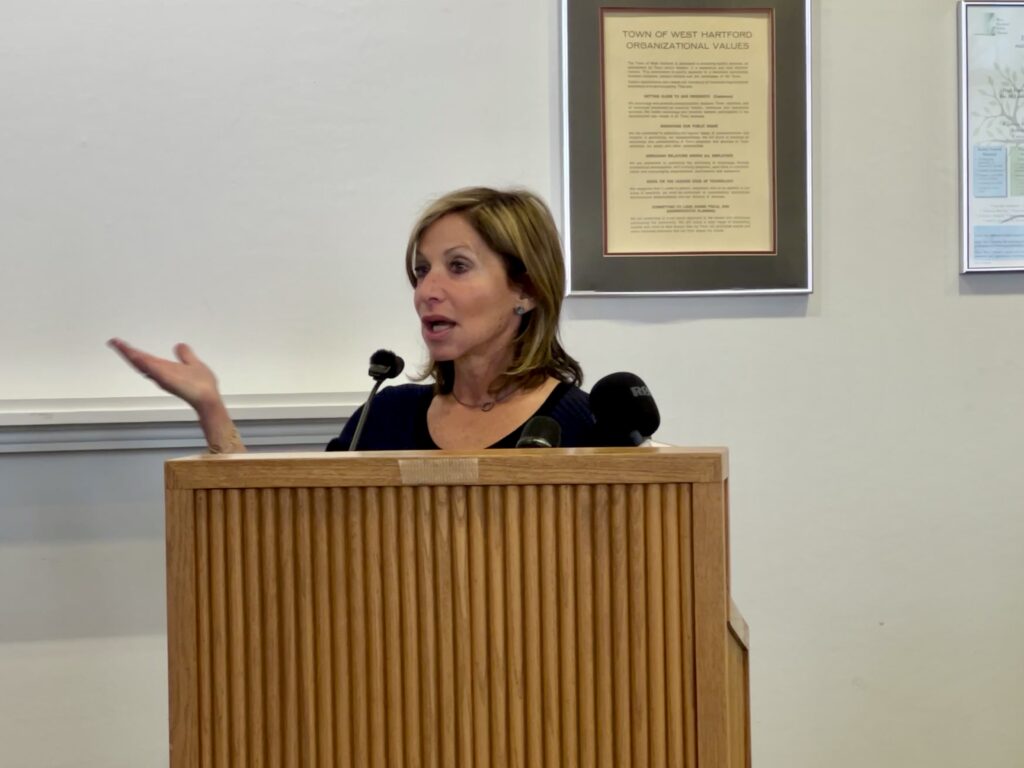 Mayor Shari Cantor speaks at a press conference about West Hartford’s Community Connectivity Grant. Jan. 21, 2026. Photo credit: Ronni Newton