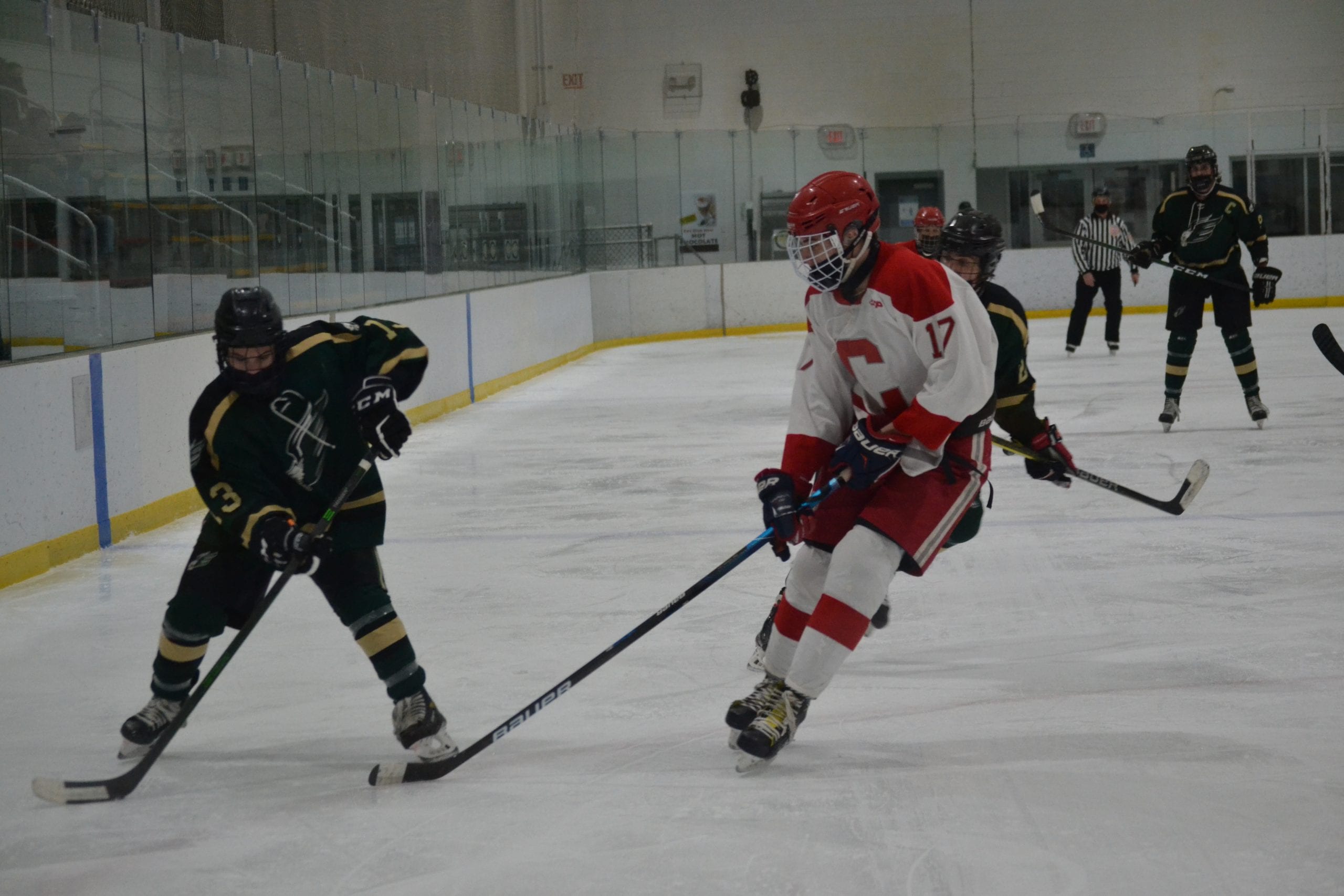 Conard Defenseman Harrison Sweeney Moves In On Enfield’s Chase Stebbins