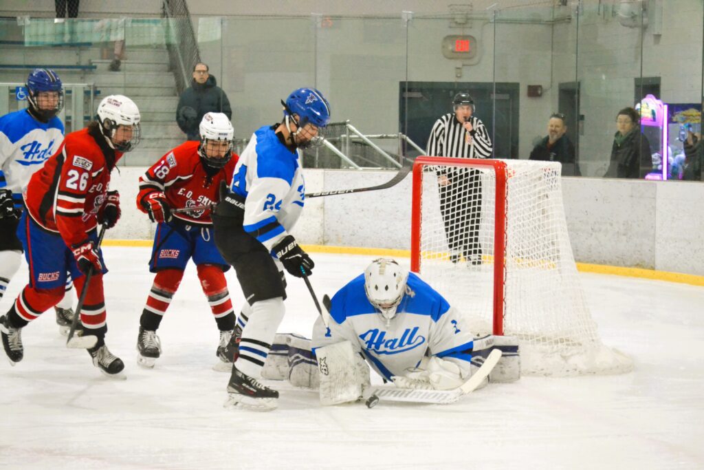 “We are a fast team and when we work hard there are not many teams that can play with us,” said O’Connor. In the second period Hall outshot the Bucks 17-5 for a two-period total of 31-11.