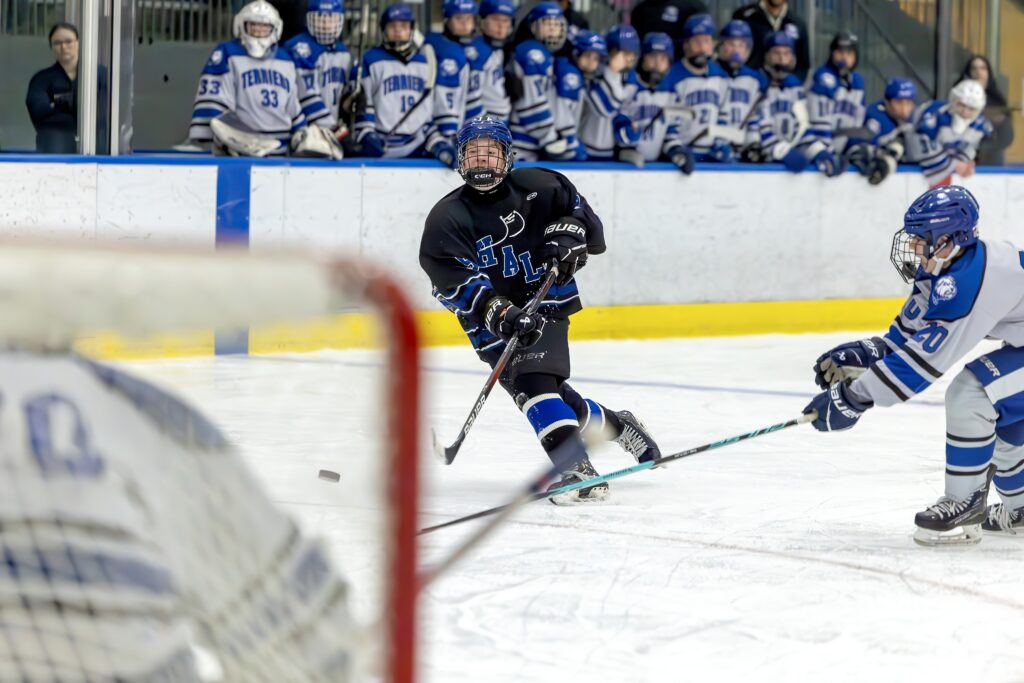 Just 2:49 into the third period, Ben Goldstein ignited the comeback with a goal assisted by Charles DeBassio and Benjamin Putnam. The energy on the Hall bench surged, and only 1:20 later, Goldstein struck again, this time finishing a play created by Matthew McDermott and Charlie Ganey, to cut the deficit to one.