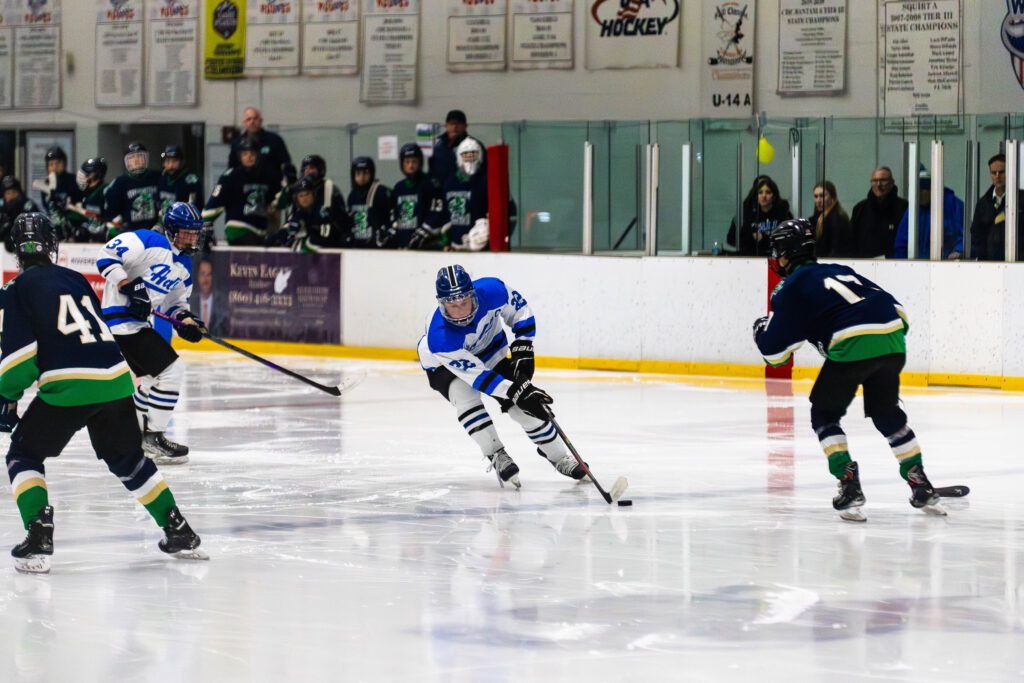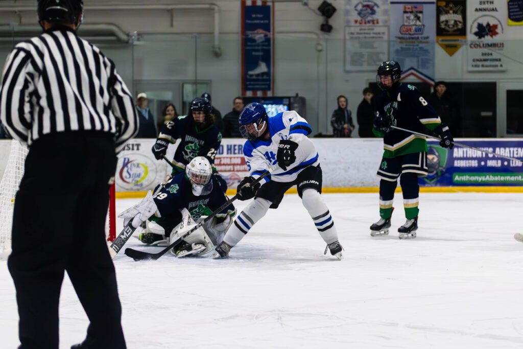 The Titans’ first goal came on the power play when Connor McHugh found the back of the net following an interference penalty on a Shamrocks defender. McHugh’s goal, assisted by Jack Croce and Benjamin Goldstein, tied the game at 1-1, a score that held through the end of the first period.
