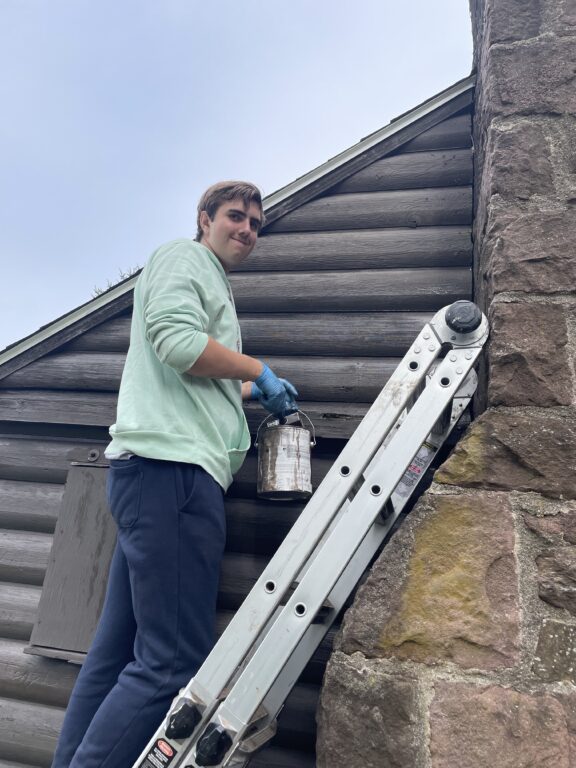 JJ Safryn painting the exterior of the cabin at Westmoor Park. Courtesy photo