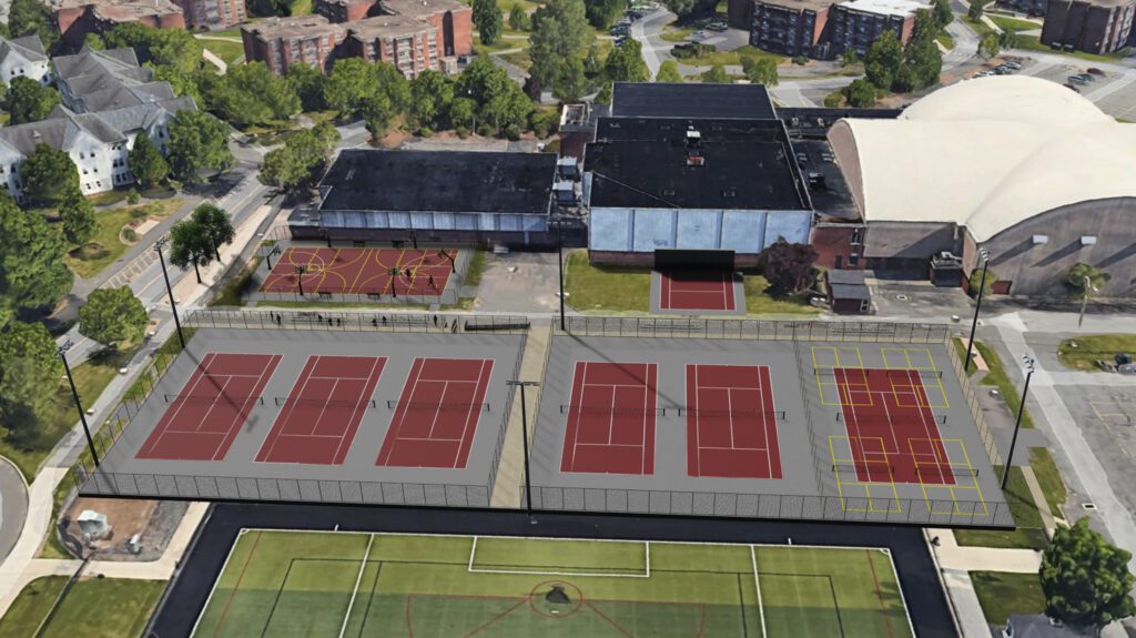 The $2.4 million project at the University of Hartford in West Hartford will include new tennis, basketball, and pickleball courts.