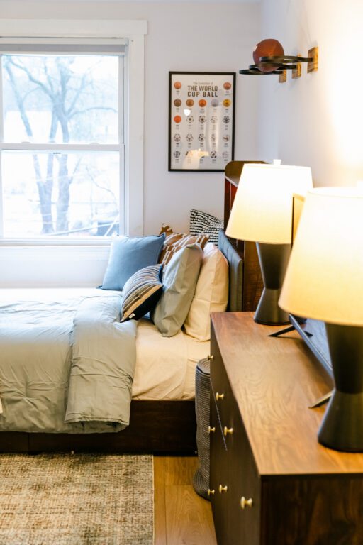 Primary bedroom before Merry Makeover. Courtesy of Camden Grace Interiors