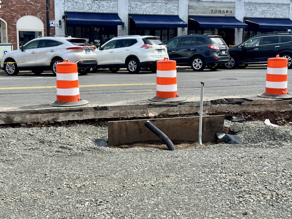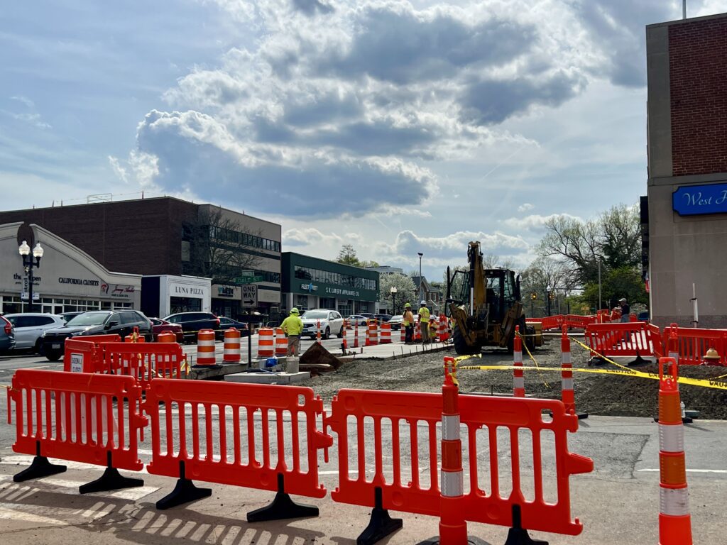 Progress on West Hartford Center Infrastructure Master Plan along Farmington Avenue as of April 16, 2026. Photo credit: Ronni Newton