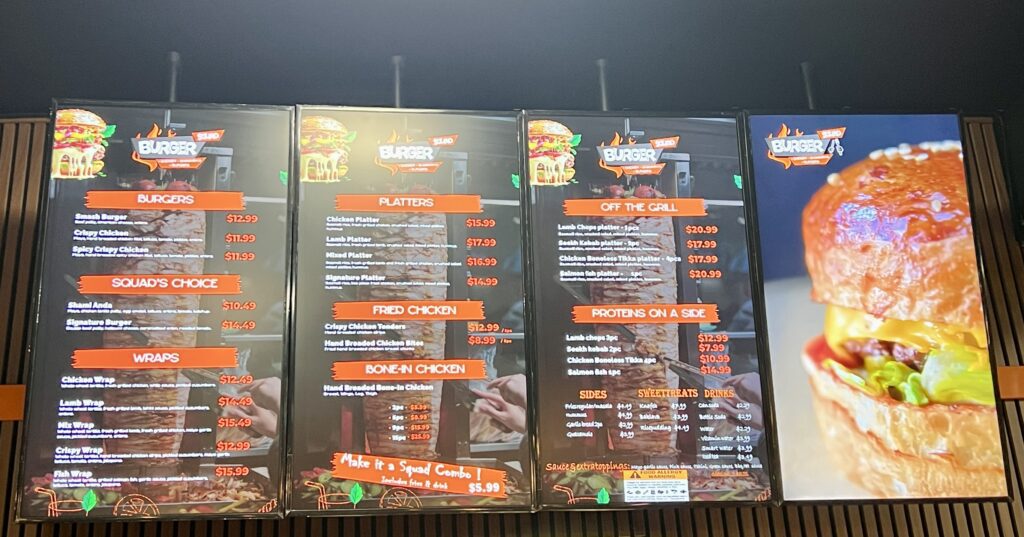 - I plan to go back this week to sample the food since I was out of town for the grand opening, but wanted to share that Burger Squad is now open at 165 Park Road (the space that was formerly Zaytoon’s Bistro). I was driving by on Friday morning and noticed that the paper had been taken off the door – so I quickly parked and tried the door and it was open! Jahan Akram, one of the three owners, was there working on some final details in advance of a soft opening Friday afternoon. He said the grand opening was scheduled for Saturday from noon to 10 p.m. This is the first location for Burger Squad, which is a halal concept that features a variety of Mediterranean food, burgers, as well as chicken shawarma, fried chicken, and wraps. “This is a very unique idea that we’re bringing to West Hartford,” one of the owners previously told me.