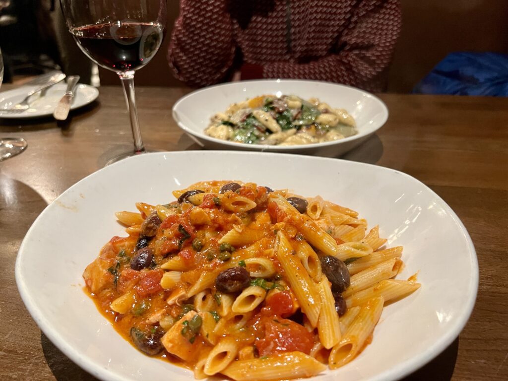 Penne with Grilled Chicken and House-Made Ricotta Gnocchi. 30th anniversary celebration. Restaurant Bricco, 78 LaSalle Road, West Hartford. Photo credit: Ronni Newton