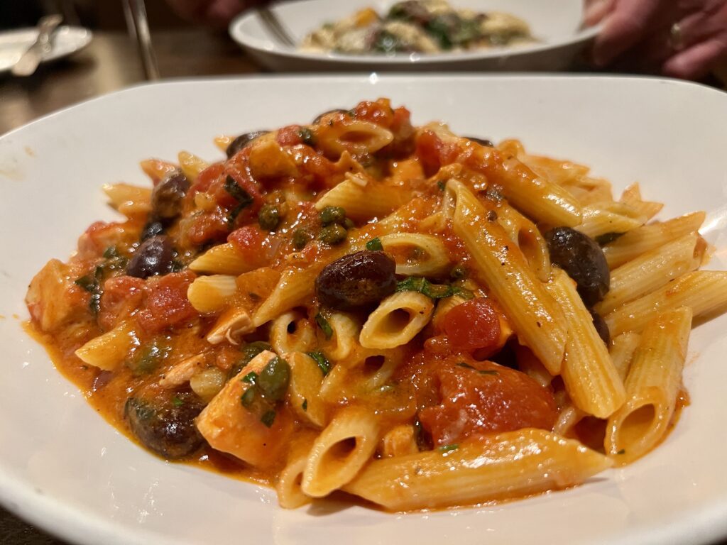 Penne with Grilled Chicken. 30th anniversary celebration. Restaurant Bricco, 78 LaSalle Road, West Hartford. Photo credit: Ronni Newton