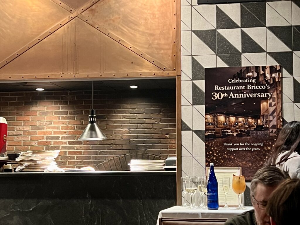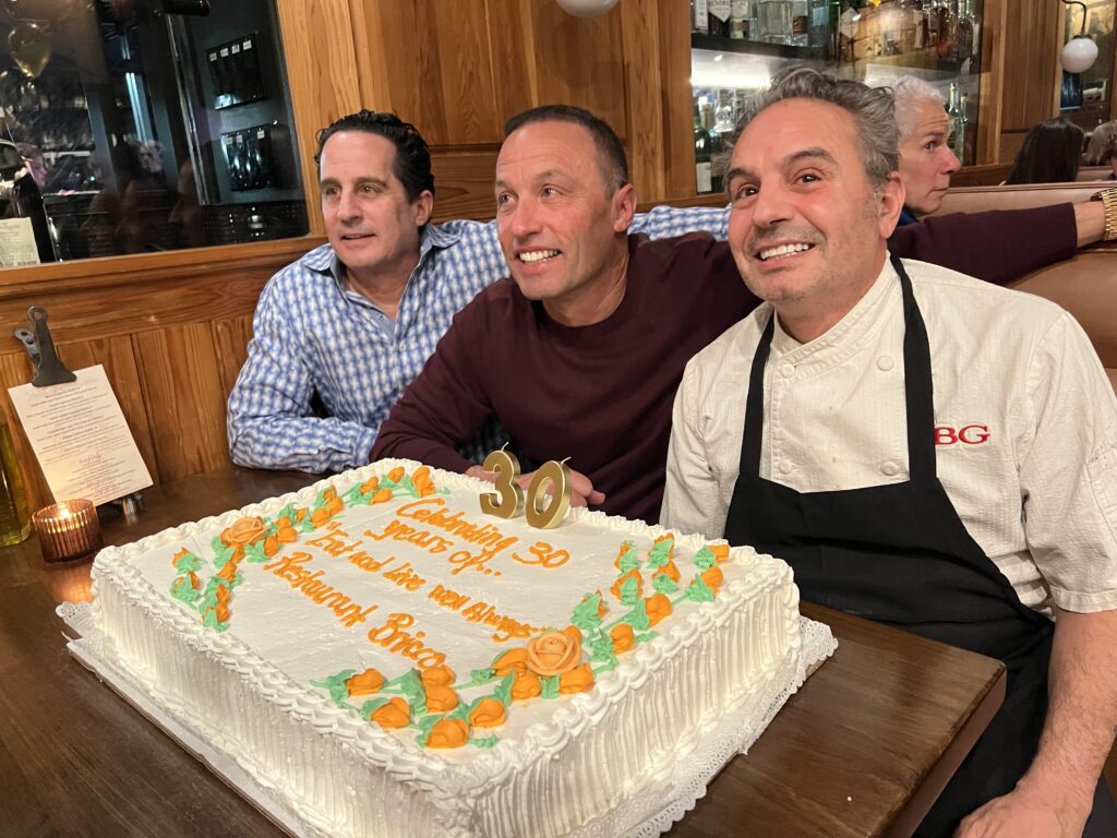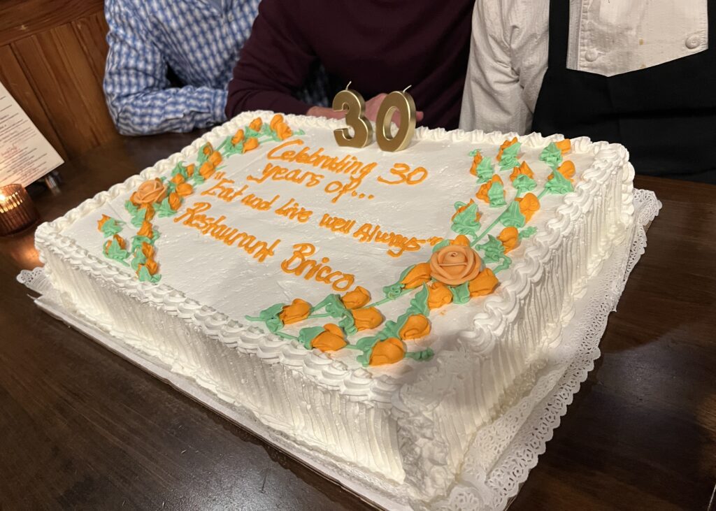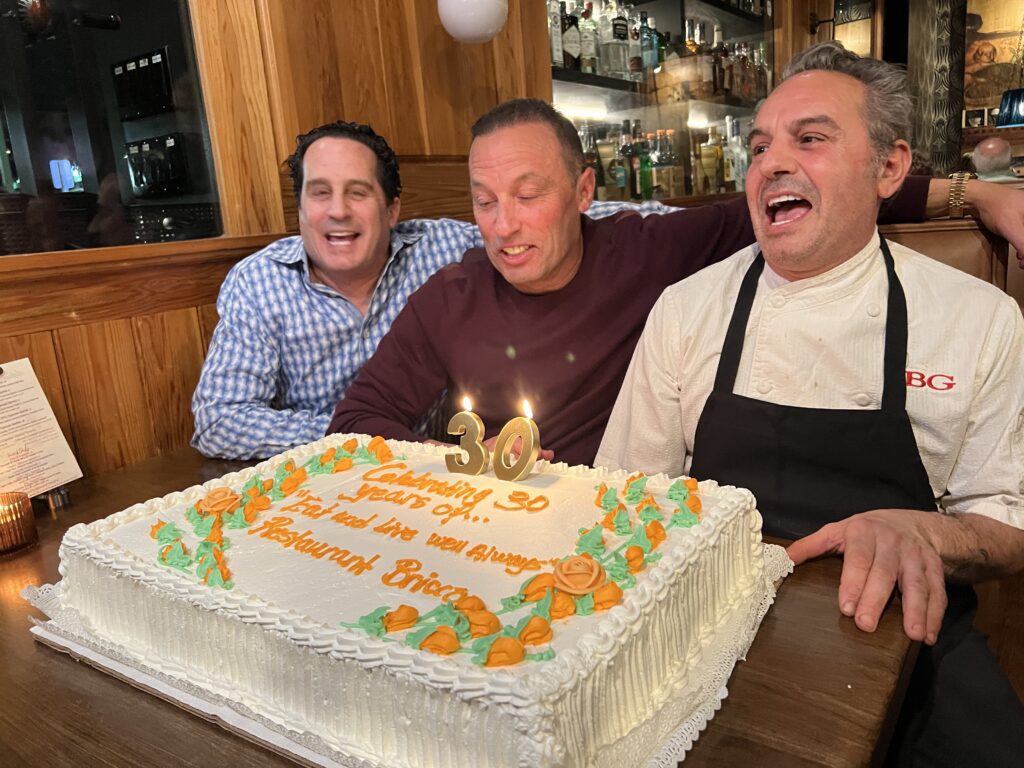 - When I learned that Restaurant Bricco would be celebrating its 30th anniversary this month, it was hard to believe! It seems like just yesterday that I interviewed Billy Grant about his 25th, but that was less than a year into the pandemic when time was completely distorted. When I interviewed him for the article in 2021, Billy told me that when he opened Bricco (official date was Jan. 18, 1996), the restaurant was considered “edgy.” While I would not necessarily use that term to define what has been my favorite restaurant since moving to West Hartford in 1998, I would definitely say that despite its longevity Bricco has not lost its edge! Part of that is Billy Grant himself, who is always warm and welcoming, always giving back to the community, and genuinely loves his work. “I would not be here without Tony and Mike,” he told me, wanting to be sure that his two brothers – who ran the Manhattan Bagel shop on Farmington Avenue (now Chipotle) for several years before the trio found the 78 LaSalle Road location and made the decision to open Bricco – were recognized as part of the family business celebration. For the nostalgia of the anniversary occasion, which lasted from Monday through Wednesday, Billy brought back some items that were on the original menu. A few fun facts that he shared were that more than a dozen couples got together while working for Bricco – 17 that have gone on to get married and/or have children. … Valley Fish and D&D Market have been suppliers since the beginning – and Billy said his father, who owned Augie & Rays in Hartford, had done business with them previously. … Sous Chef Oscar Soriano has been with him in the kitchen for 26 years. Billy’s son, Billy IV, who is now married and has a young child of his own, celebrated his first birthday at Bricco shortly after it opened. … “There have been so many talented chefs,” Billy added, quickly running off a list of those who had worked at Bricco over the years, that included KC Ward, Adam Greenberg, Jamie Bissonnette, Eric Sass, Fran Marino, Nick Mancini, Brent Stanford, Brian Moyers, Charlie England, Corey Cannon, and Jon Gyles. (My apologies to any names that I may not have caught.) “This week was just an outpouring,” Billy said, with many from the past visiting, along with devoted customers, some of whom eat at Bricco a few times a month or even once a week. “I’m super thankful for all, just super, super thankful for my family, for my employees,” he said. As for the future, “I would really like to make it to 50 years,” Billy said. With the signature motto remaining unchanged since the beginning – “Eat and live well always” – let’s hope that “always” continues for many, many more years to come.