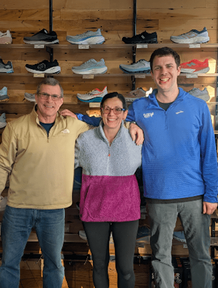 From left: David Jacobs, Fernanda Jacobs, Scott Levine at Fleet Feet Glastonbury. Courtesy photo
