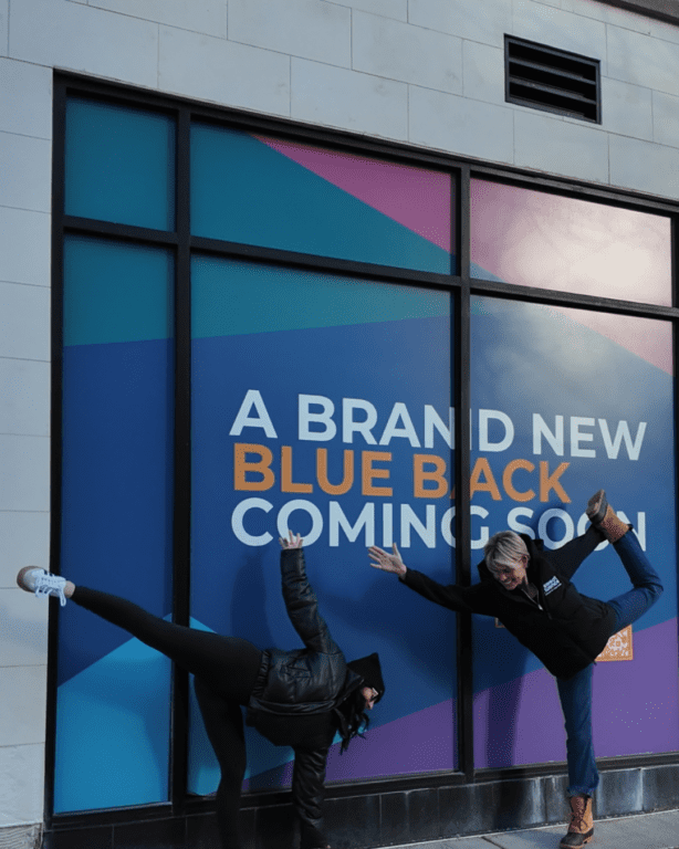 Courtney Del Vecchio (right) and Rachel Gerould in front of their future space in Blue Back Square. Courtesy photo