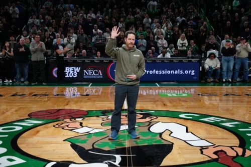 Jon Winer on the court at the Jan. 10, 2026 Celtics game. Courtesy photo