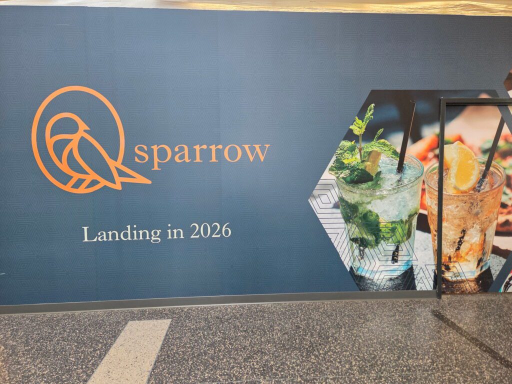 - My sister saw this sign for Sparrow at Bradley Airport last week! I checked with David Boyajian about the expansion of the West Hartford Center restaurant and he said they licensed the brand to the airport. It’s near Gate 2, and will likely open late this summer.