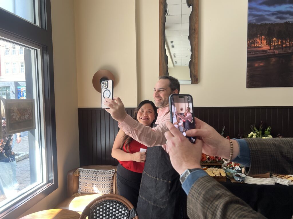 Char-cu-te-rie Owner Anna Estiandan and her partner and VP David Cicia. Char-cu-te-rie, 80 Memorial Road in Blue Back Square, had its grand opening on March 26, 2026. Photo credit: Ronni Newton