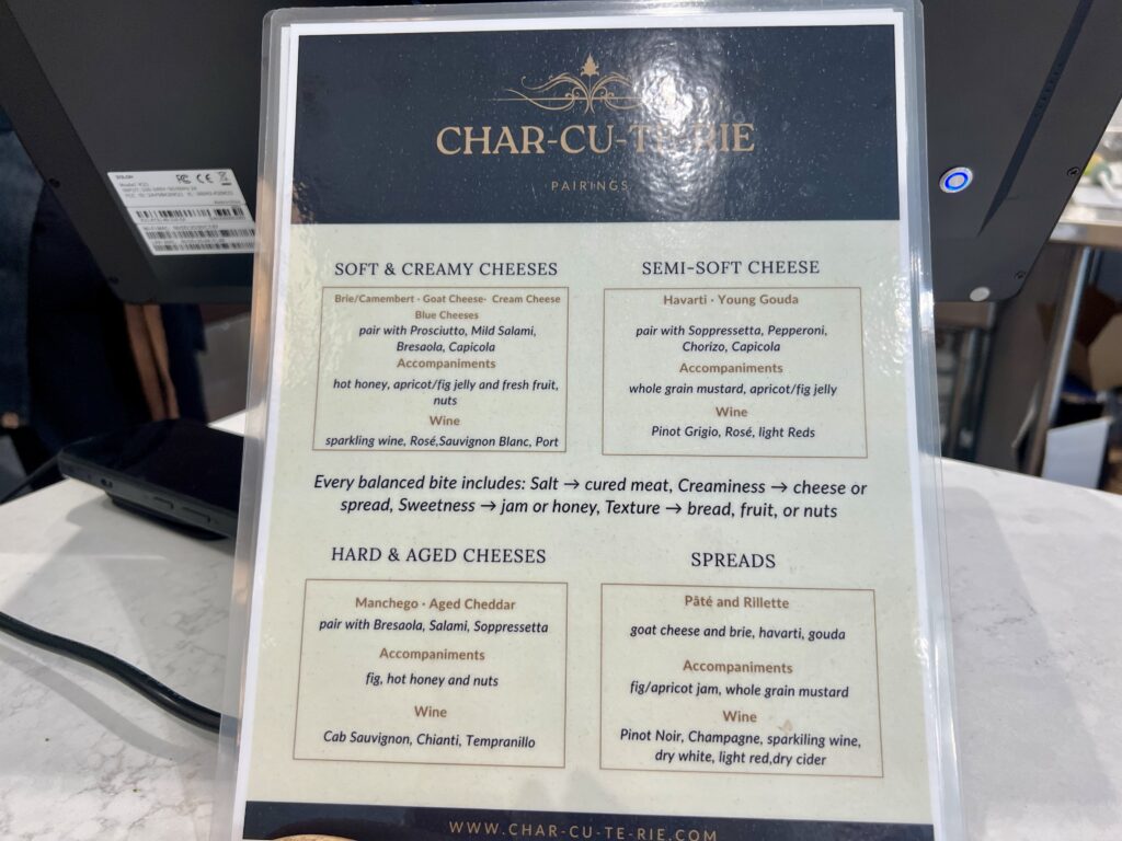 Some selections from the spread at the grand opening of Char-cu-te-rie on March 26, 2026. Photo credit: Ronni Newton