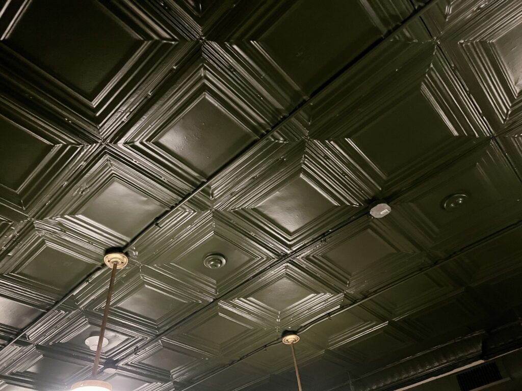 The tin ceiling in the new event space at The Laurel, 1046 New Britain Avenue, West Hartford. Photo credit: Ronni Newton