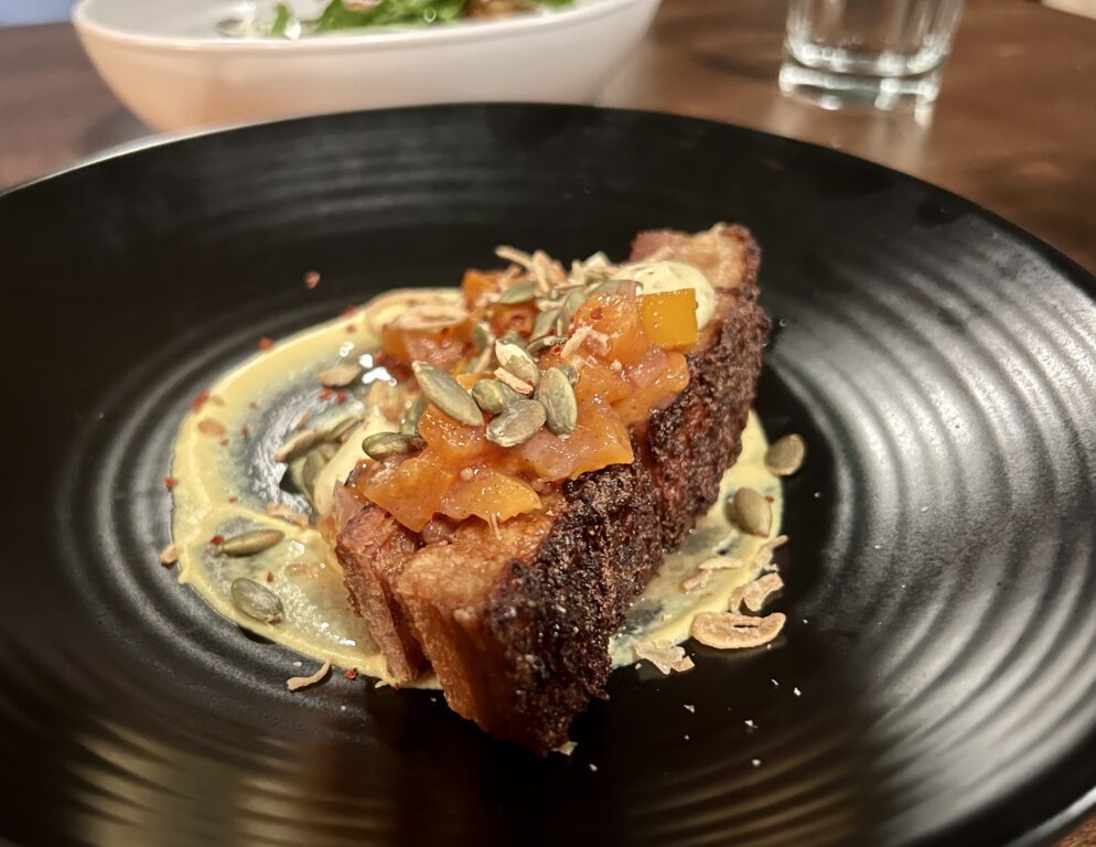 Berkshire pork belly (roasted pork belly, persimmon chutney, pepitas) at The Laurel. Photo credit: Ronni Newton