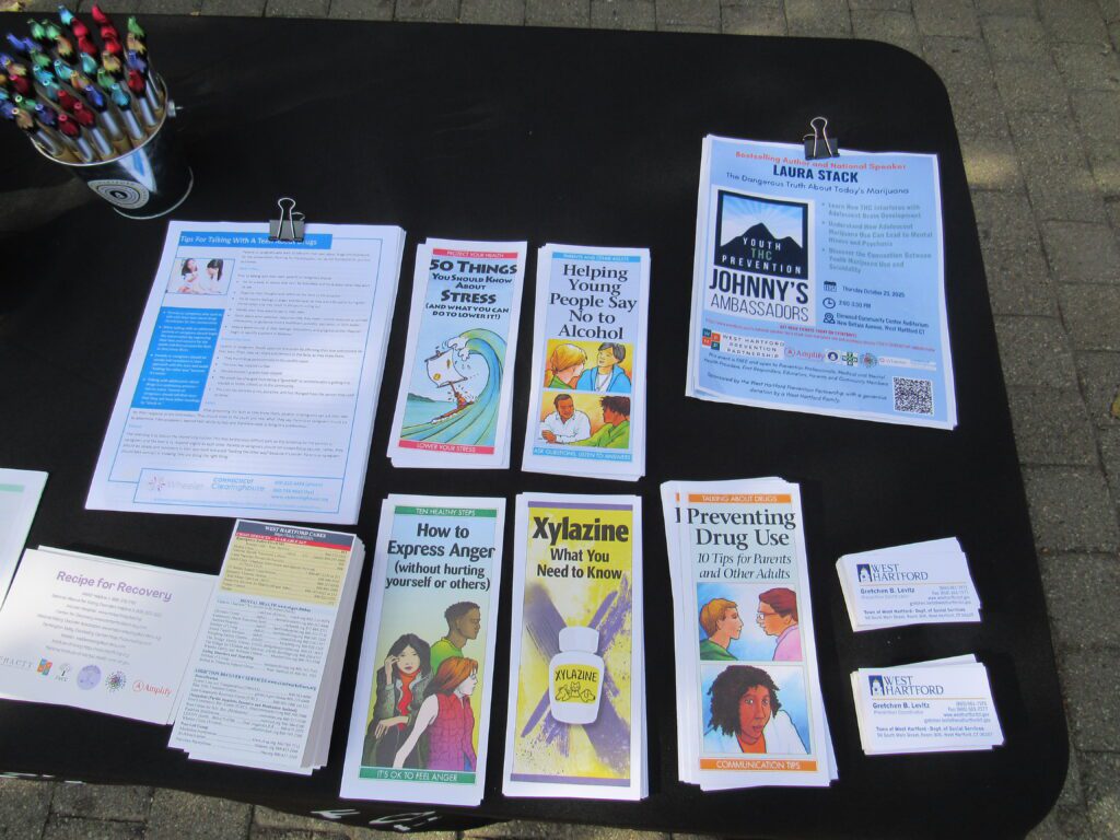 West Hartford Prevention Partnership table at community mural dedication on Sept, 30, 2025. Photo credit: Mia Jaworski