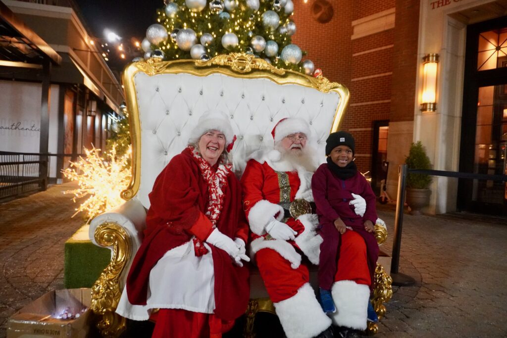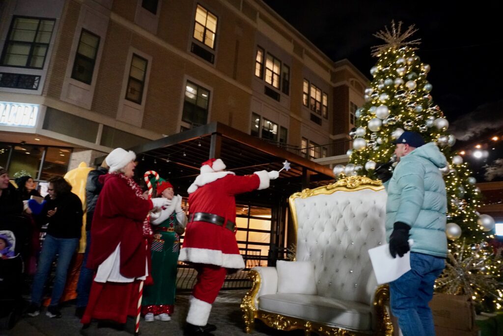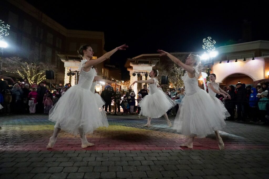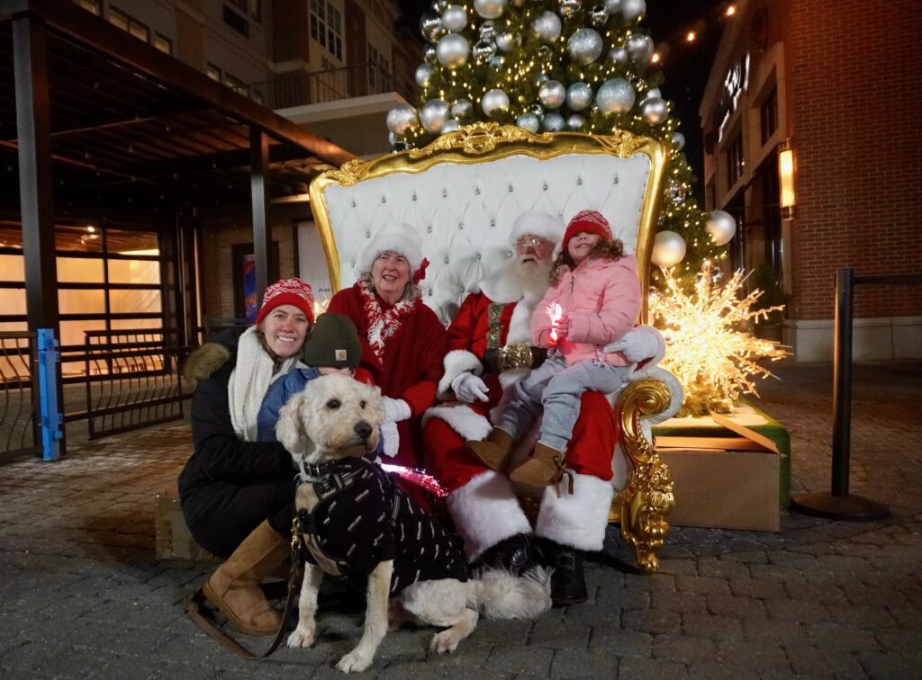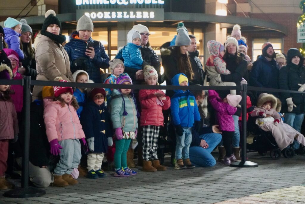 Ballerinas from Fisher Ballet provided an excerpt from “The Nutcracker” as a prelude to the appearance of Santa, who along with Mrs. Claus and some elves arrived in Blue Back Square just after 5 p.m. in a shiny red convertible. After a greeting from emcee Adam Rivers of Kiss 95.7, Santa waved his magic snowflake wand to light the tree in the courtyard before visiting with wide-eyed children.
