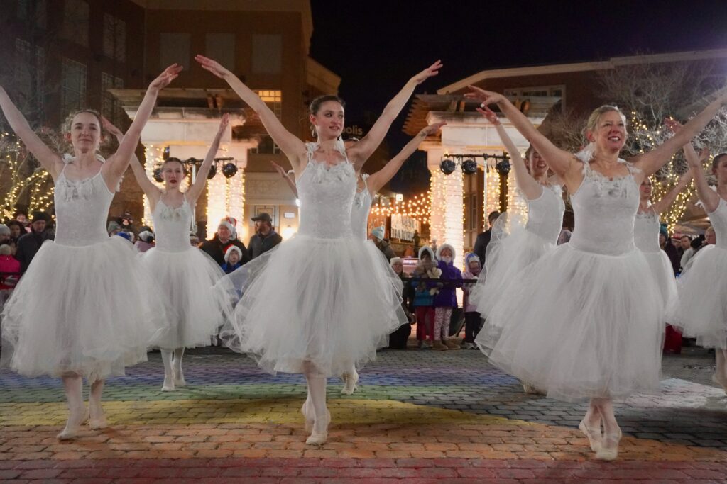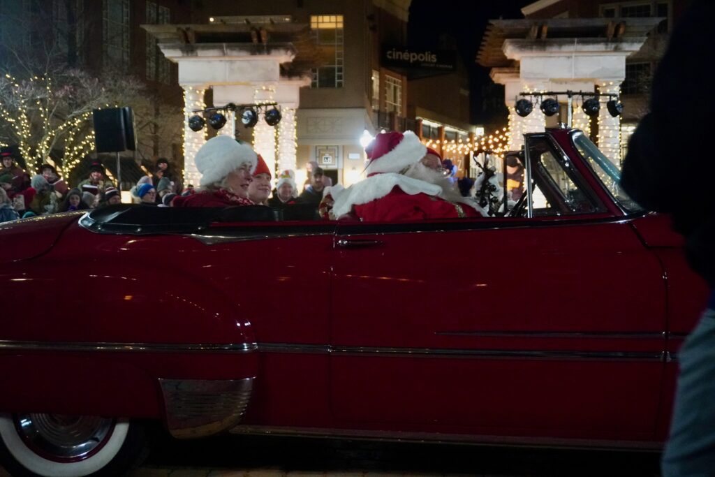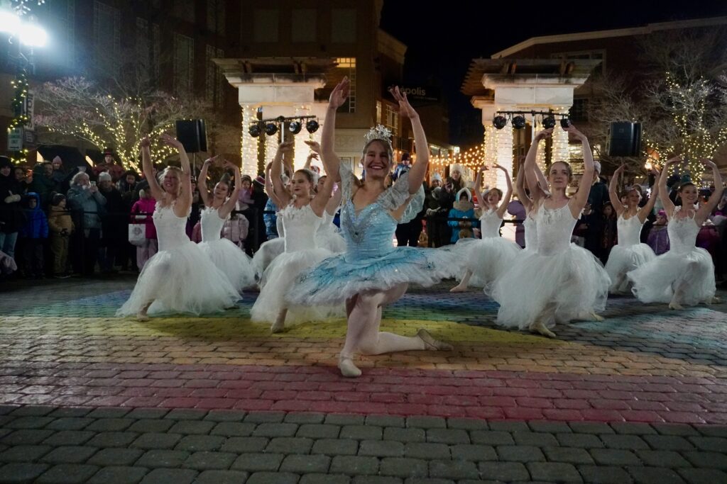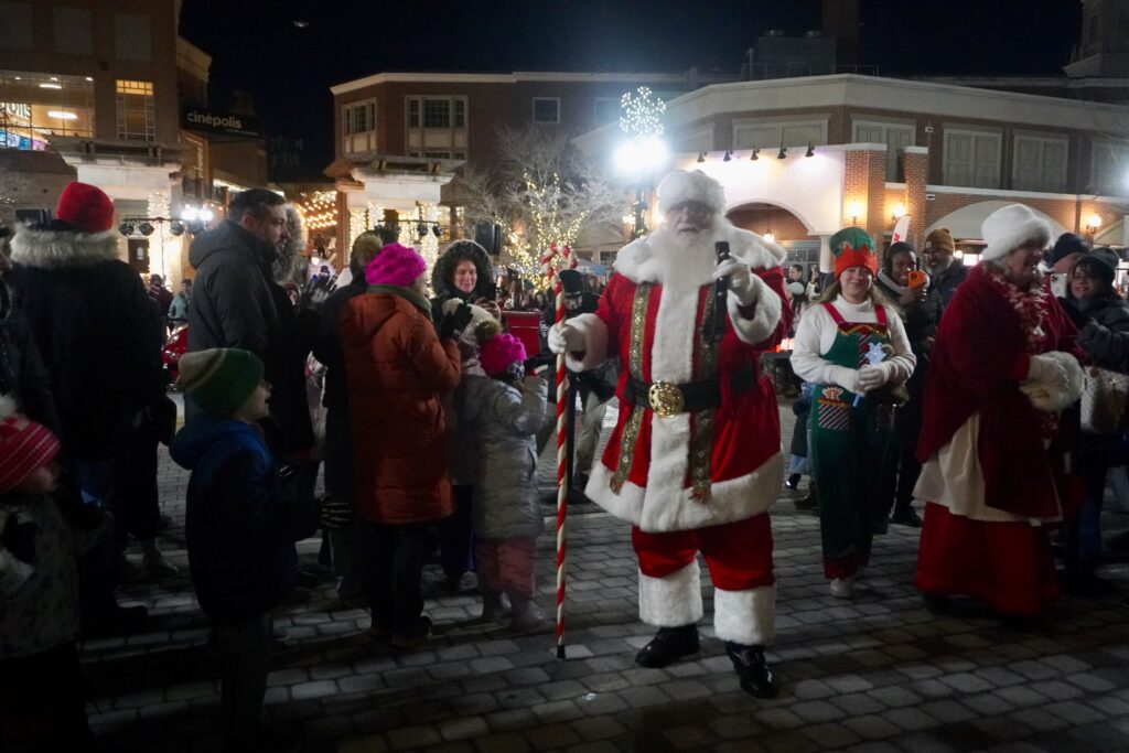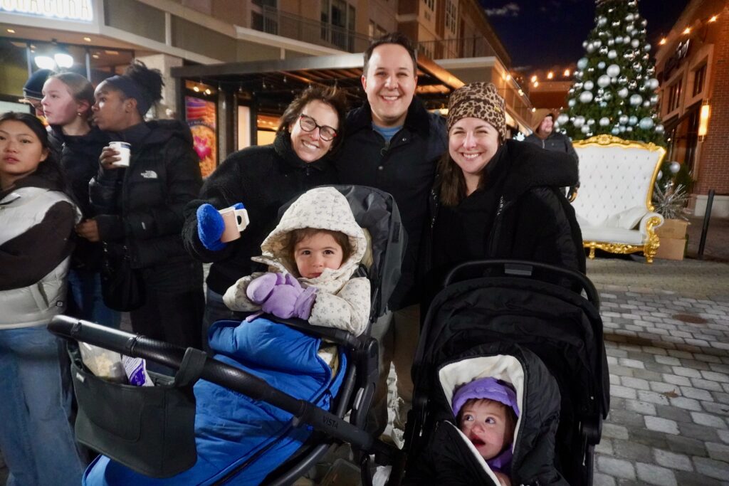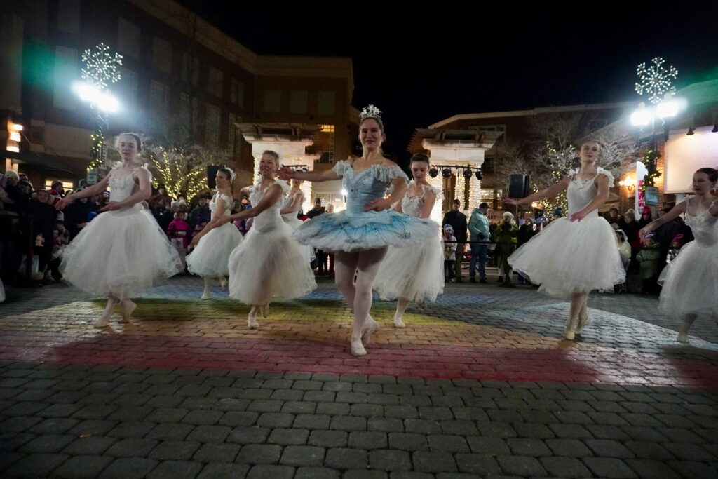 Ballerinas from Fisher Ballet provided an excerpt from “The Nutcracker” as a prelude to the appearance of Santa, who along with Mrs. Claus and some elves arrived in Blue Back Square just after 5 p.m. in a shiny red convertible. After a greeting from emcee Adam Rivers of Kiss 95.7, Santa waved his magic snowflake wand to light the tree in the courtyard before visiting with wide-eyed children.