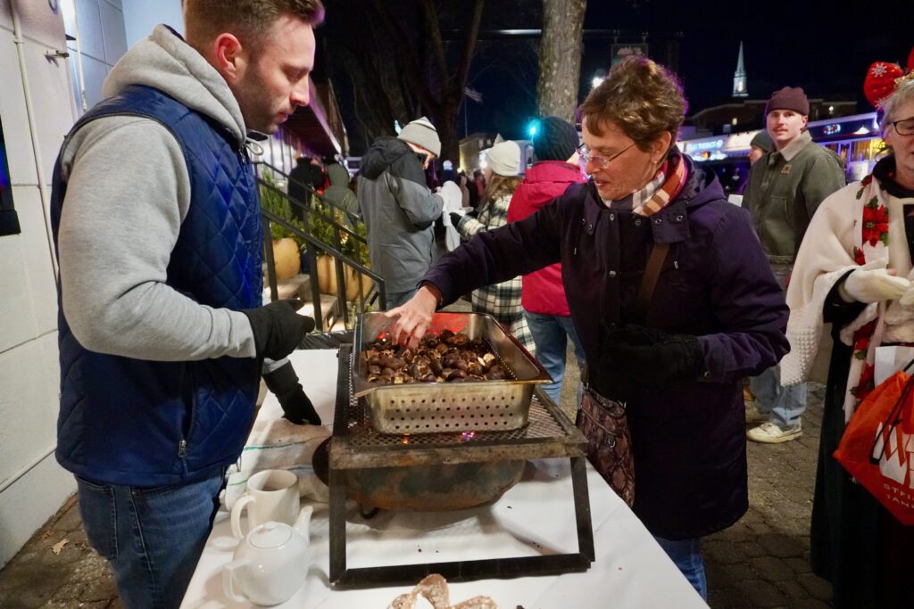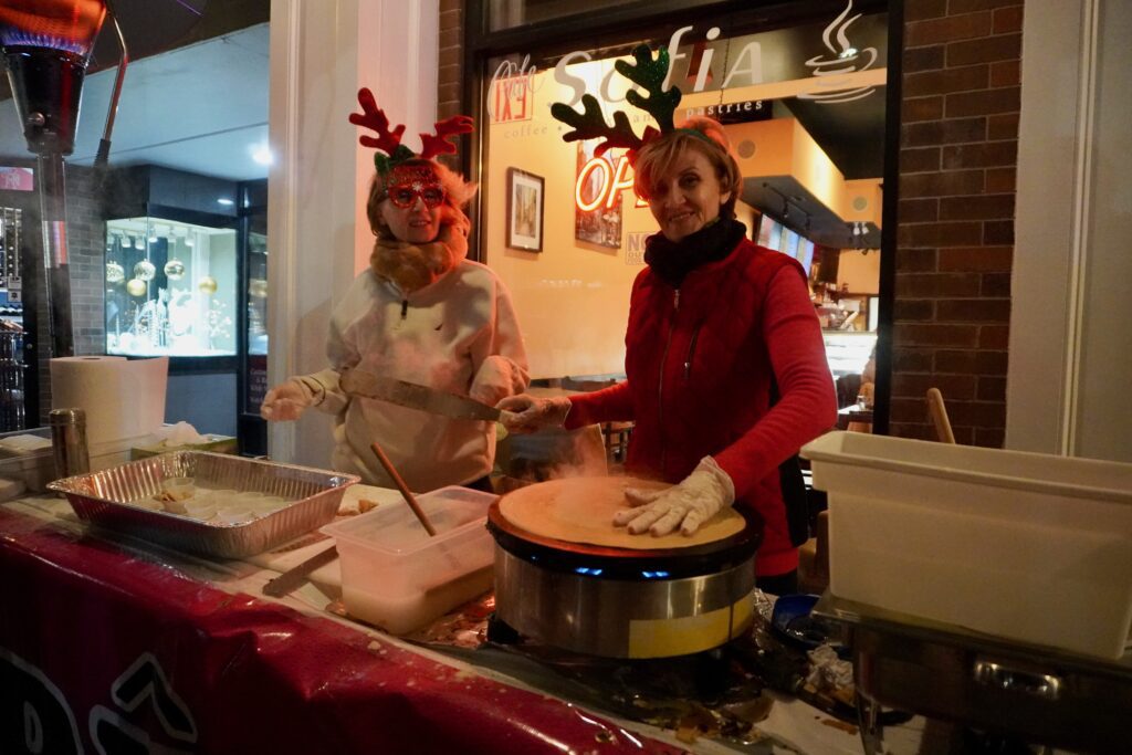 With snow flurries setting the mood, there were truly chestnuts roasting over an open fire (courtesy of Treva), along with hot cocoa, crepes, and other heart-warming treats being handed out by local businesses to keep people warm as they enjoyed the magical winter spirit of the evening. There were Victorian carolers, dancers, and live musical performances on three stages.