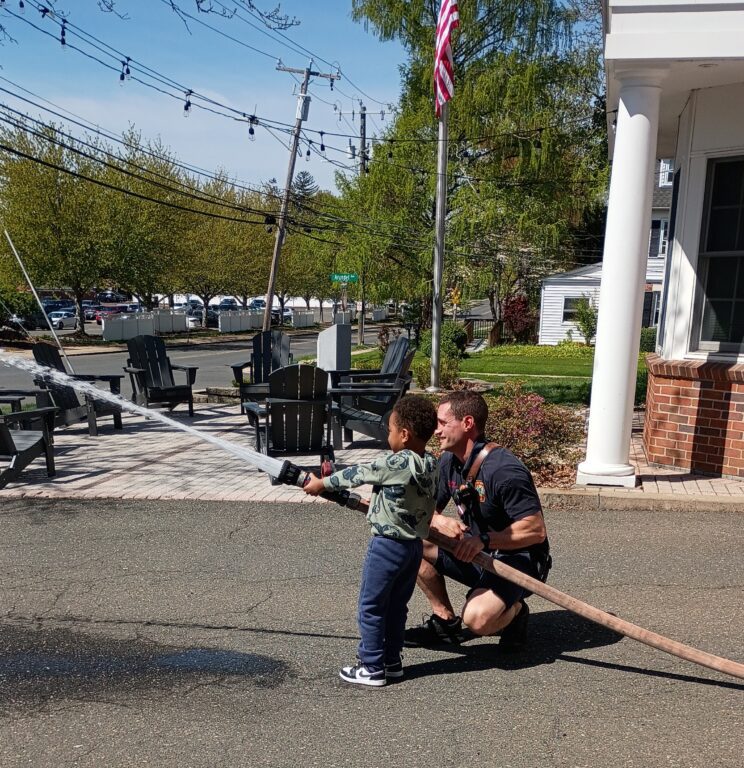 Austin tests out the fire hose at the West Hartford Fire Department’s Brace Road station. Courtesy of Candice Kardulis