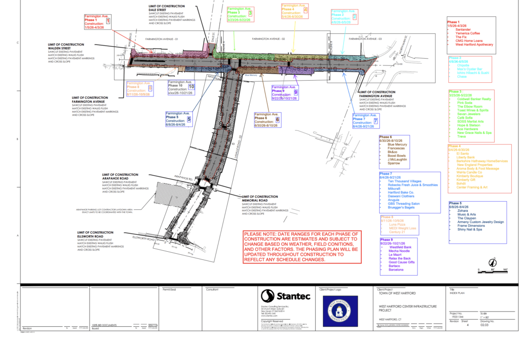 West Hartford Center Infrastructure Master Plan Schedule, updated March 20, 2026