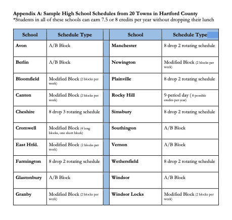 West Hartford Public Schools Planning Switch to Block Scheduling in High Schools