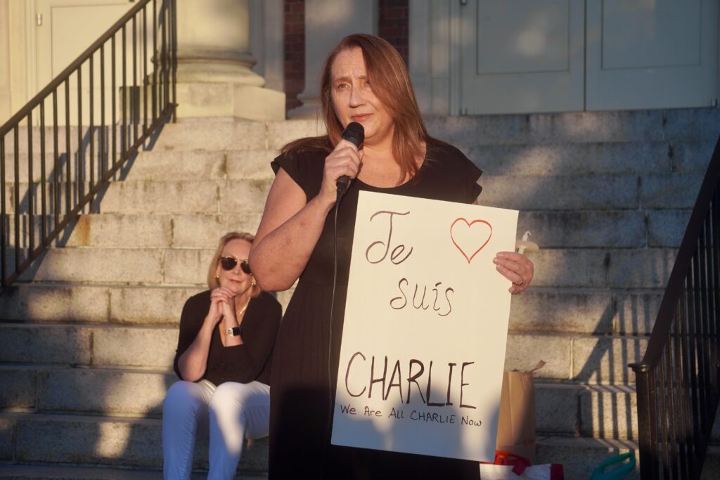Dr. Gayle Harris. West Hartford RTC candlelight vigil for Charlie Kirk. Sept. 15, 2025. Photo credit: Ronni Newton