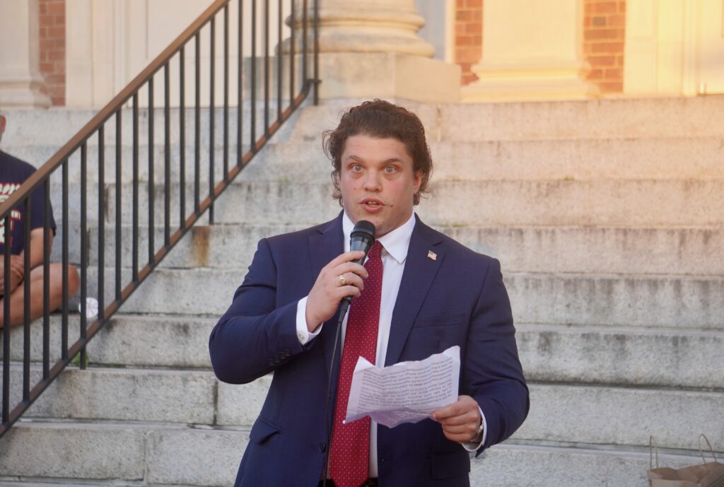 Kyle Zelazny. West Hartford RTC candlelight vigil for Charlie Kirk. Sept. 15, 2025. Photo credit: Ronni Newton