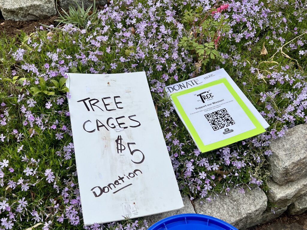 In addition to distributing the trees, the West Hartford Tree Project provides education about where and how the trees should be planted. Cages were also available at the distribution event, and donations of $5 each were suggested.