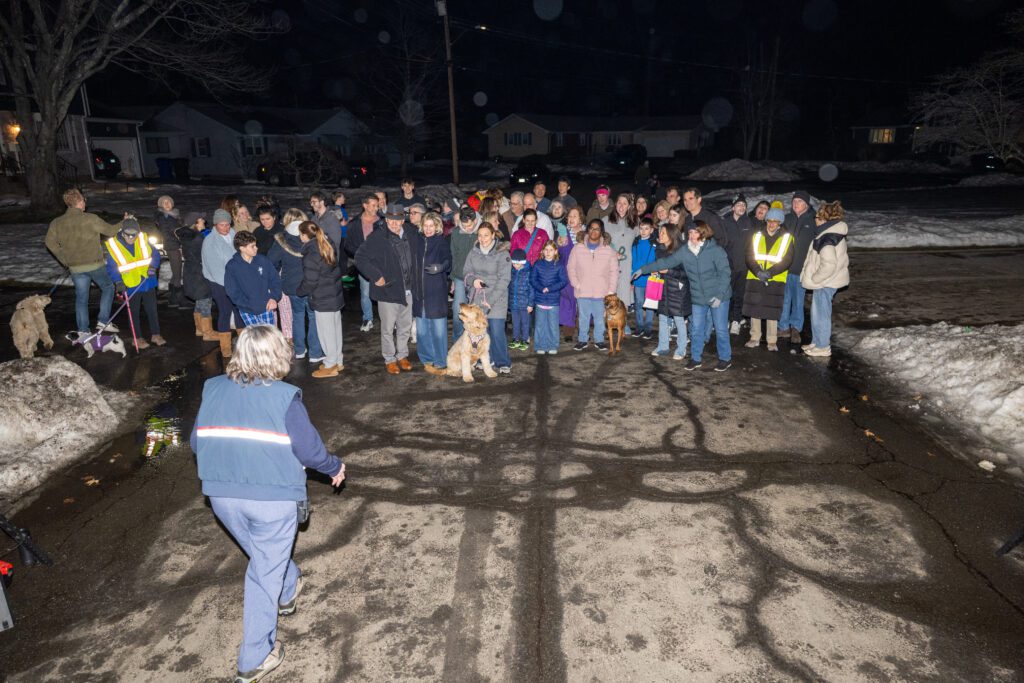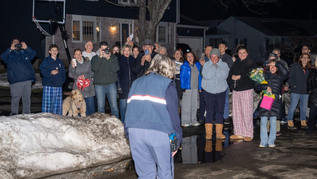 As Sherry delivered her final route, she stepped out of her mail truck into a heartfelt surprise: a large gathering of neighbors waiting for her. Smiles, applause, flowers, cake and even a few happy tears filled the evening air as residents – along with many of the dogs she came to know so well – welcomed her with gratitude and love.