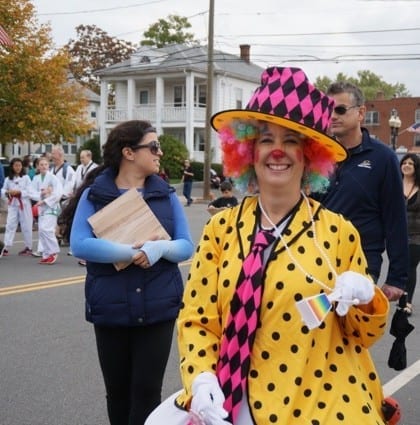 One of several clowns in West Hartford’s 2014 Park Road Parade. Photo credit: Ronni Newton.