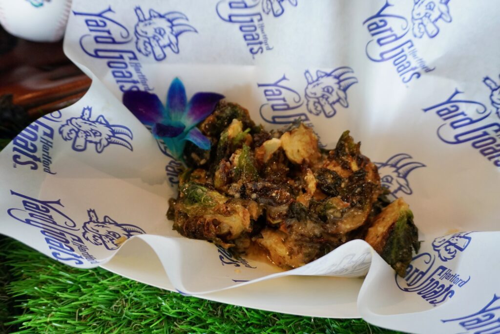 Garlic Parmesan Brussels Sprouts are among the offerings at Dunkin’ Park during the 2026 Yard Goats season. Photo credit: Ronni Newton