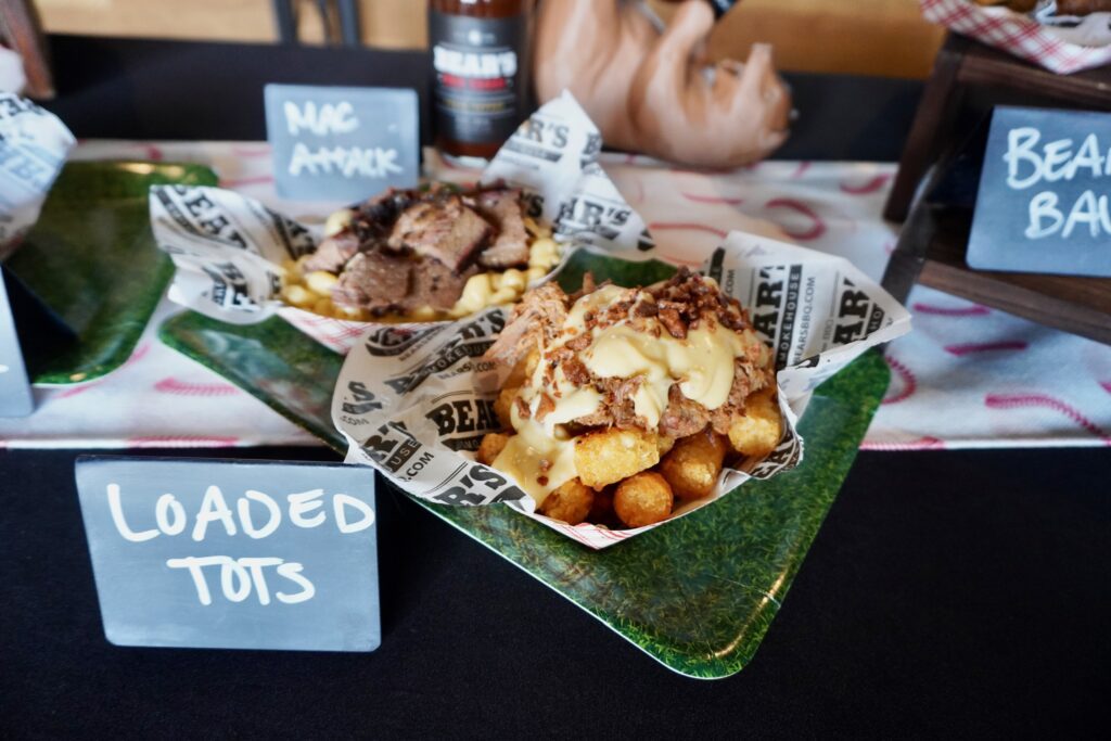 “In center field we’ve got classic Bears going on this year,” Therriault said. There are “Bear Balls,” she said, and a deep-fried cornbread/pulled pork/mac and cheese bowl smothered with cheese sauce and bacon. They will be serving all of the classic smoked meats as well as “impossible meatloaf” as a vegan option, as well as the Mac Attack, Bear Attack, and multiple side dishes.