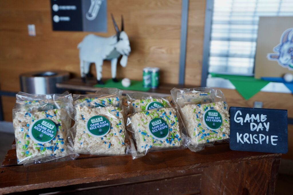 This year, Bears has also added a sweet – the Game Day Rice Krispie” – infused with green and blue sprinkles. “Perfect for the kids to grab at the register, and also a favorite amongst athletes as a good refuel snack,” Therriault said.