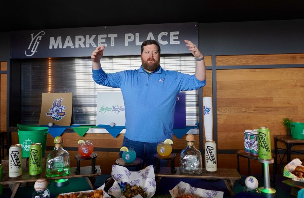 Tyler Redding shares details about the beverage offerings at Dunkin’ Park during the 2026 Yard Goats season. Photo credit: Ronni Newton