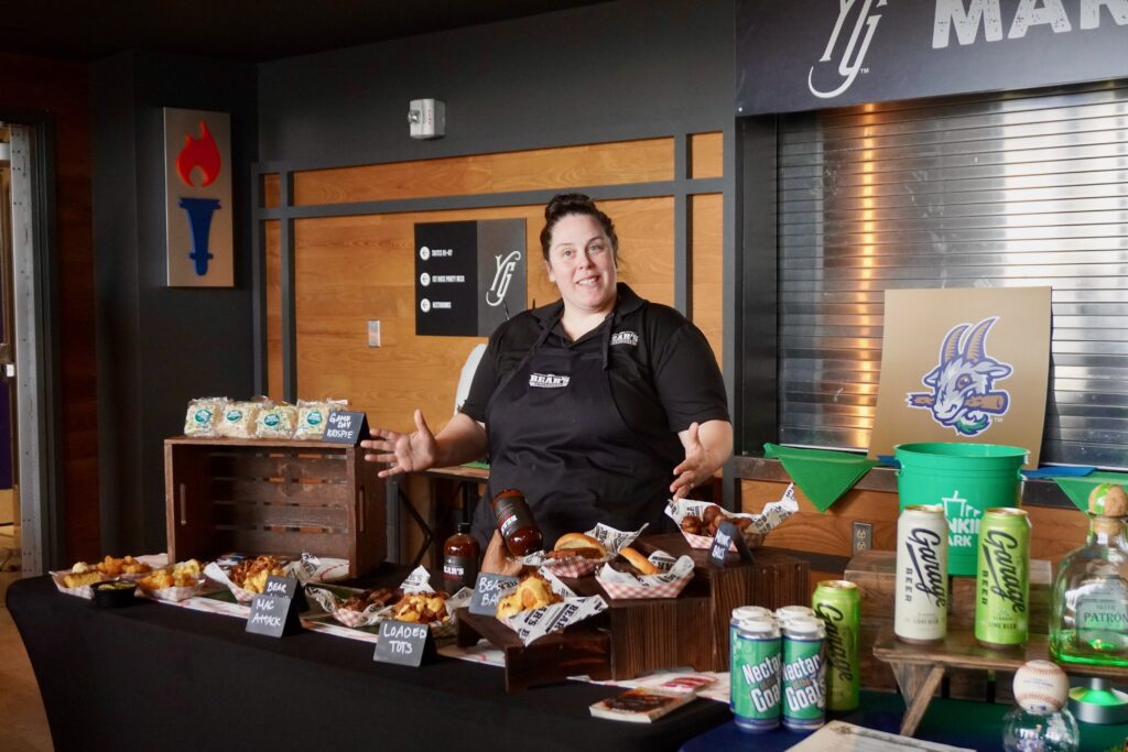 Cassie Therriault shares the menu offerings that Bears BBQ will feature at Dunkin’ Park during the 2026 Yard Goats season. Photo credit: Ronni Newton