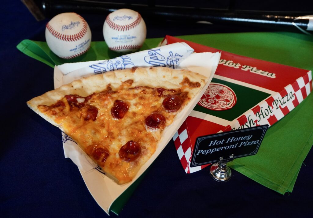 Hot Honey Pepperoni Pizza slices are among the offerings at Dunkin’ Park during the 2026 Yard Goats season. Photo credit: Ronni Newton